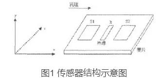現從傳熱學角度對該傳感器原理作進一步的分析。假定流體為均勻分布的牛頓型流體,以一維測量為例:如圖1所示,熱源R置于傳感器基片的中心,在其兩邊對稱地放置兩個完全相同的溫度檢測芯片(薄膜式鉑電阻)S1和S2傳感器與流體之間的熱交換主要通過對流進行,熱源與溫度檢測芯片之間的熱交換可通過傳導和對流進行。